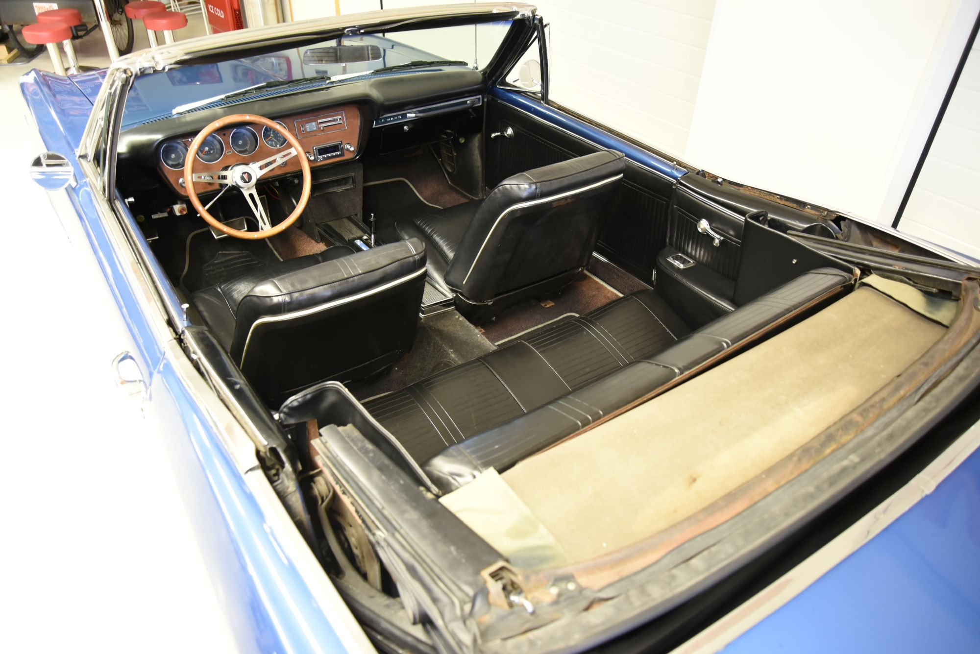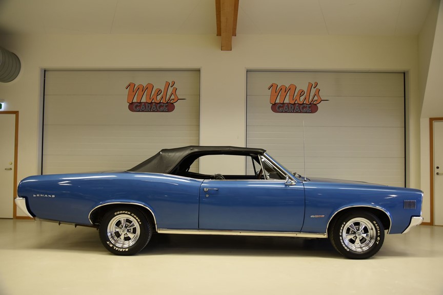 Pontiac LeMans Cabriolet 1966. V8 326 5.3L på ca 254hk. Edelbrock förgasare med el choke. Edelbrock ventilkåpor i aluminium och tillhörande luftrenare. Aluminium kylare med el fläkt. Elektronisk tändning. Hydra-Matic ST 300 automatlåda med ny bytt olja. Original bakaxel. Skivbromsar fram och trummor bak med servo. Styrservo. Hi Jackers bak. Inredning i ett allmänt mycket gott skick rakt igenom i svart vinyl. Retro sound stereo med slutsteg och baslåda. Elstyrd svart vinylcab i ett riktigt bra skick där cabkolvar, slangar och motor är bytta. Lackerad för ett antal år sedan och är i ett bra bruksskick med en del skavanker men skäms absolut inte för sig. Kromet är även det i ett bra bruksskick runt bilen. Golvet har lite rostangrepp på sina ställen men inget på bärande delar. SS-Cragar fälgar med 23560-15 däck och ca 6 mm mönsterdjup. Riktigt trevlig sommarbil som känns tight och stabil på vägen med en drivlina som fungerar utmärkt. Besiktigad 2016-06-10 och nu besiktningsbefriad.