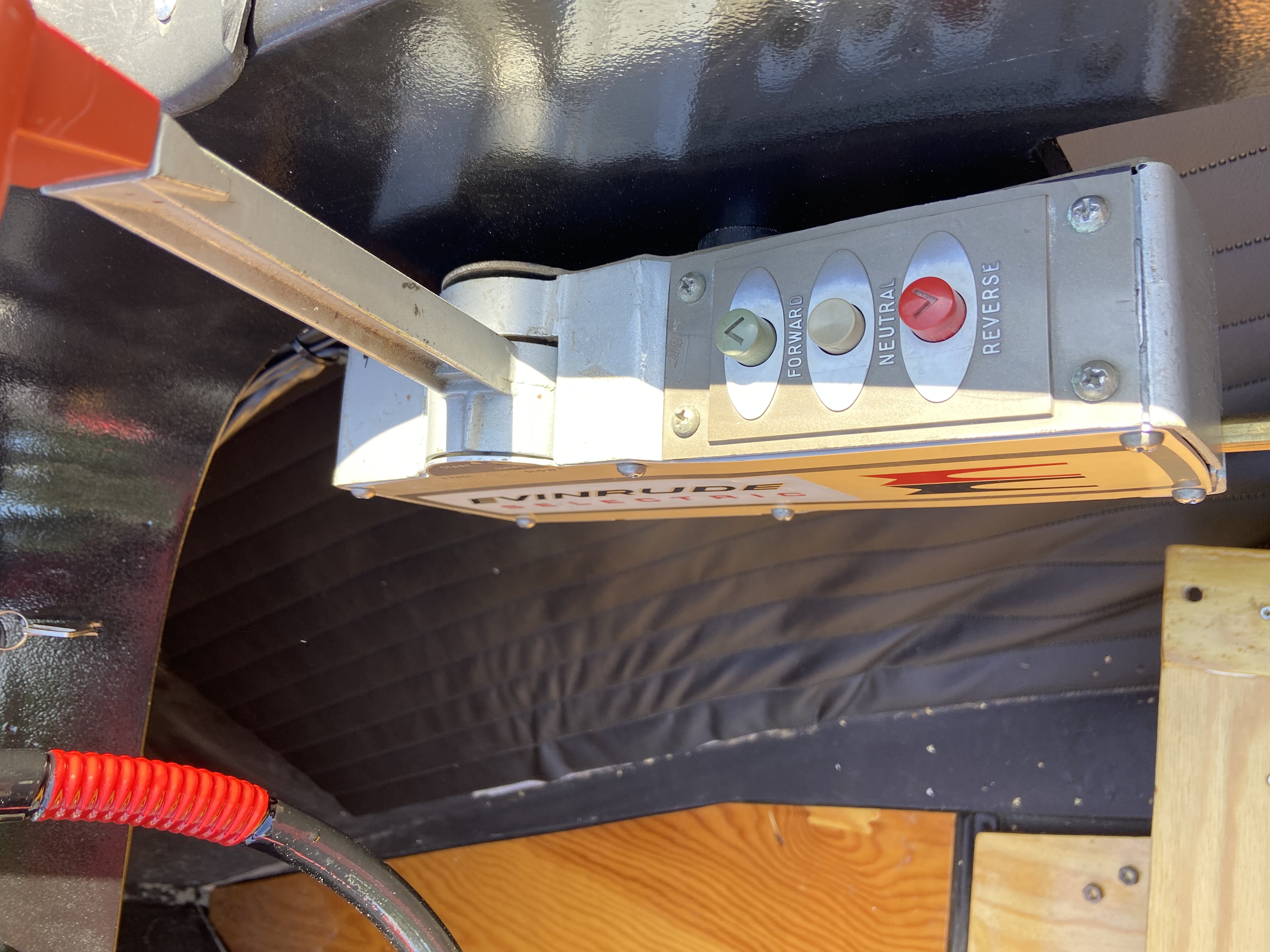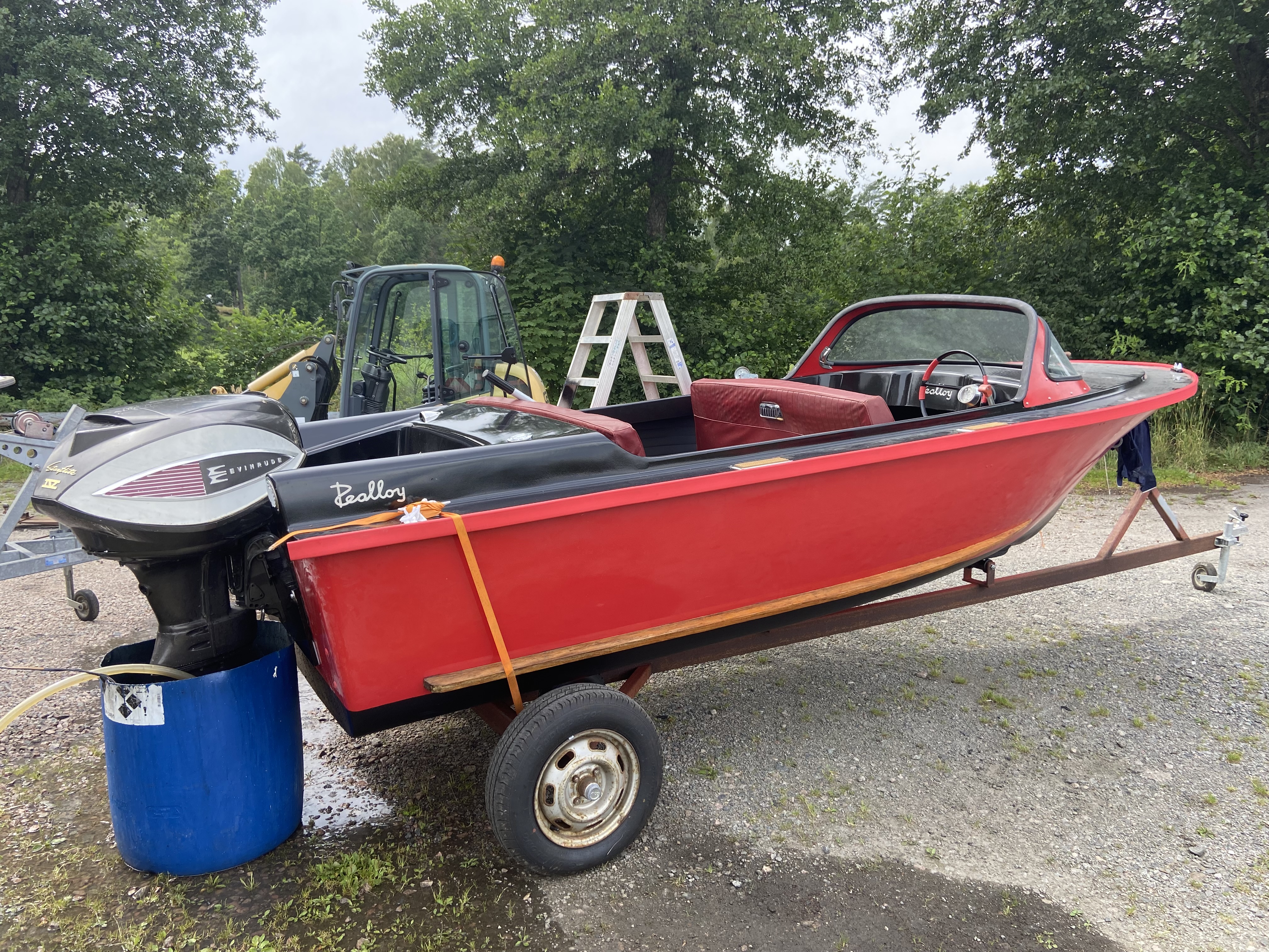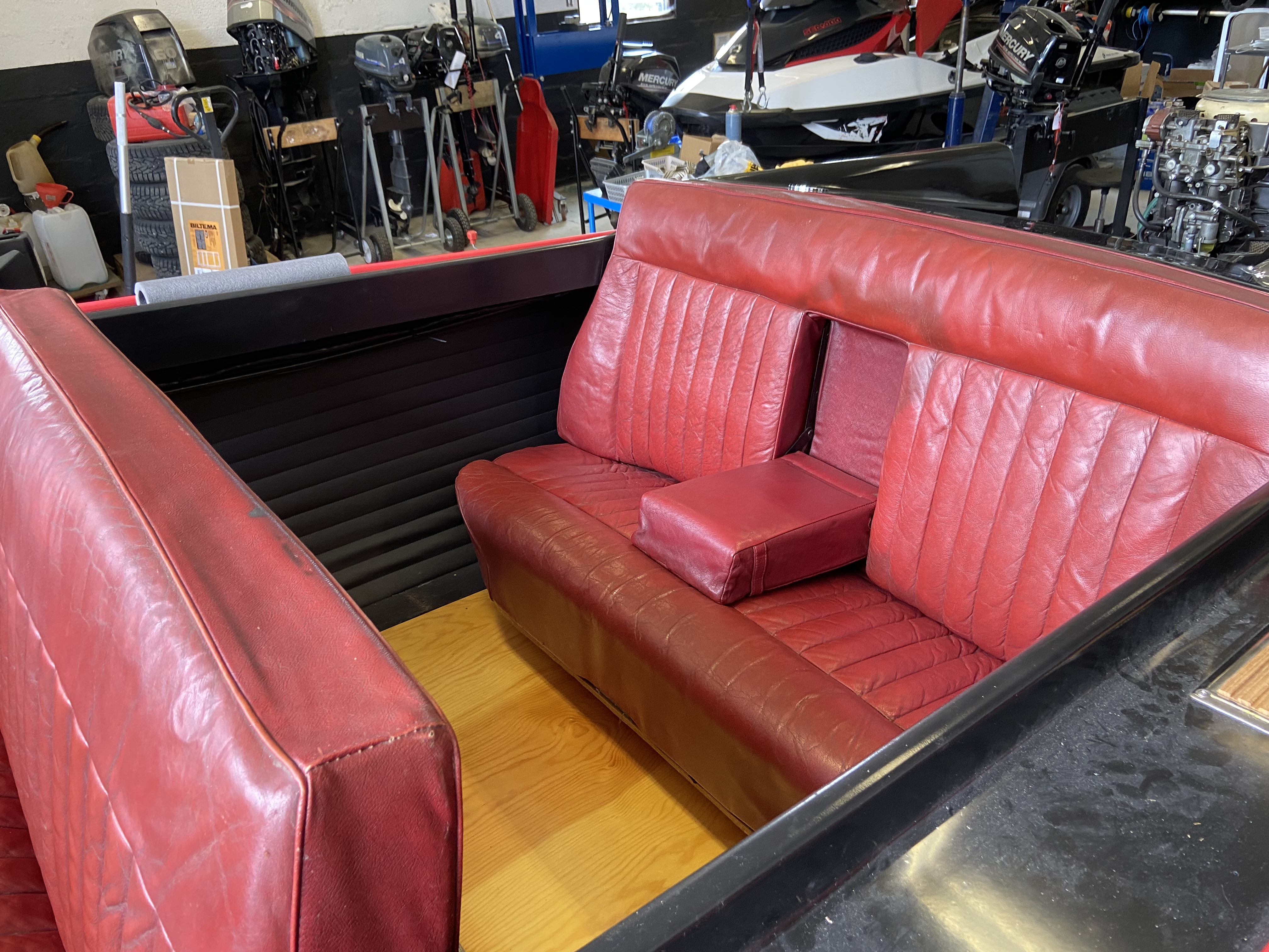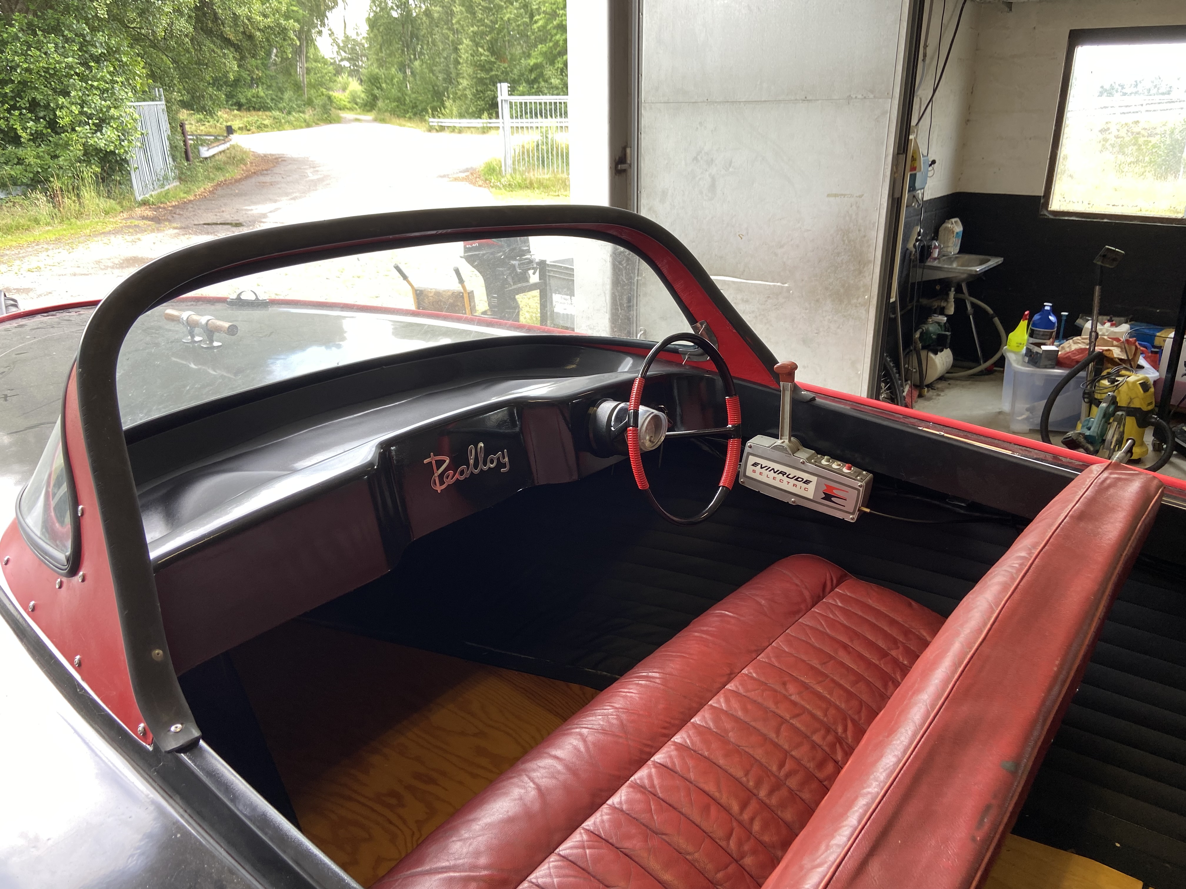 Ovanlig Veteranbåt med Evinrude 75 hp, elektrisk växling. Säten i skinn från Vauxhall Cresta 1962. Motor också från 1962