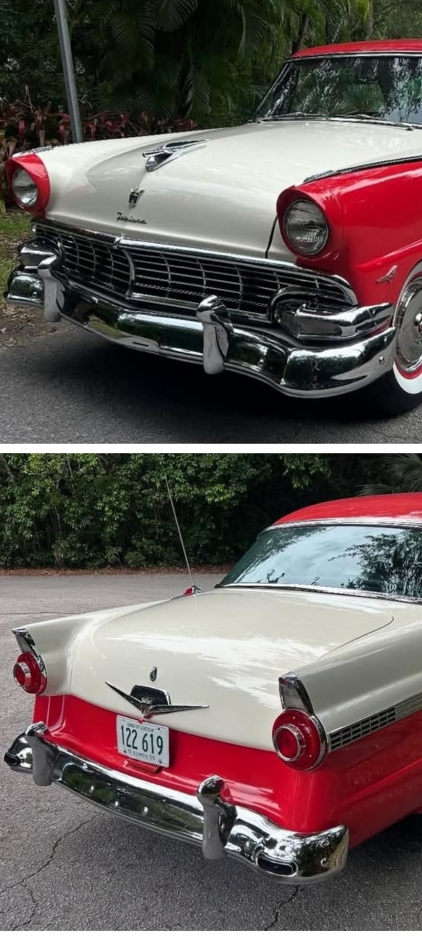 Omkromade originalstötfångare till Ford Fairlane 55-56 nu till Sverige REA. Amerikansk going out of business blow-out. 50 procent rabatt. Showchrome, tripleplating, fina baksidor- alla ämnen från sydstaterna. Verksamheten nedlagd för tio år sedan. Kvarvarande lager Ford omkromat utförsäljes. Inget tillkommer annat än fraktkostnad med Schenker och belåtenhet. Viss kredit möjlig slutbetala efter inspektion. New Years Discount - rabatt! Allt skall bort! 1955-56 Ford fram bak med horn 40.000 kr. NU 20.000 kr för fram och bak ! Även 1 st bakre till 56 Fairlane bak finns med snyggt slipade ej tidigare rostiga avgasutsläppshål + 2500 kr