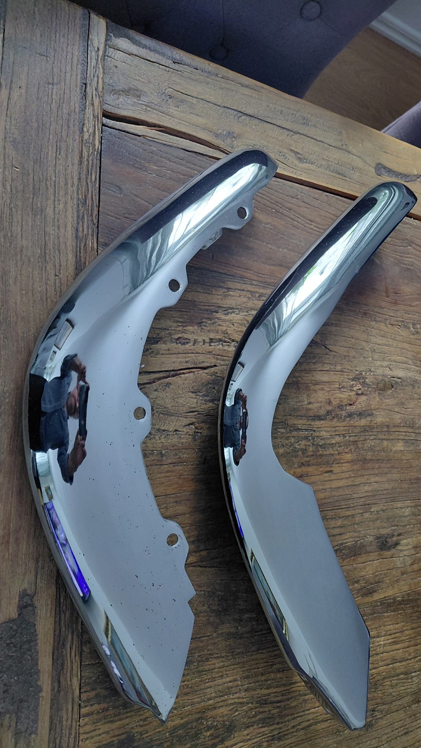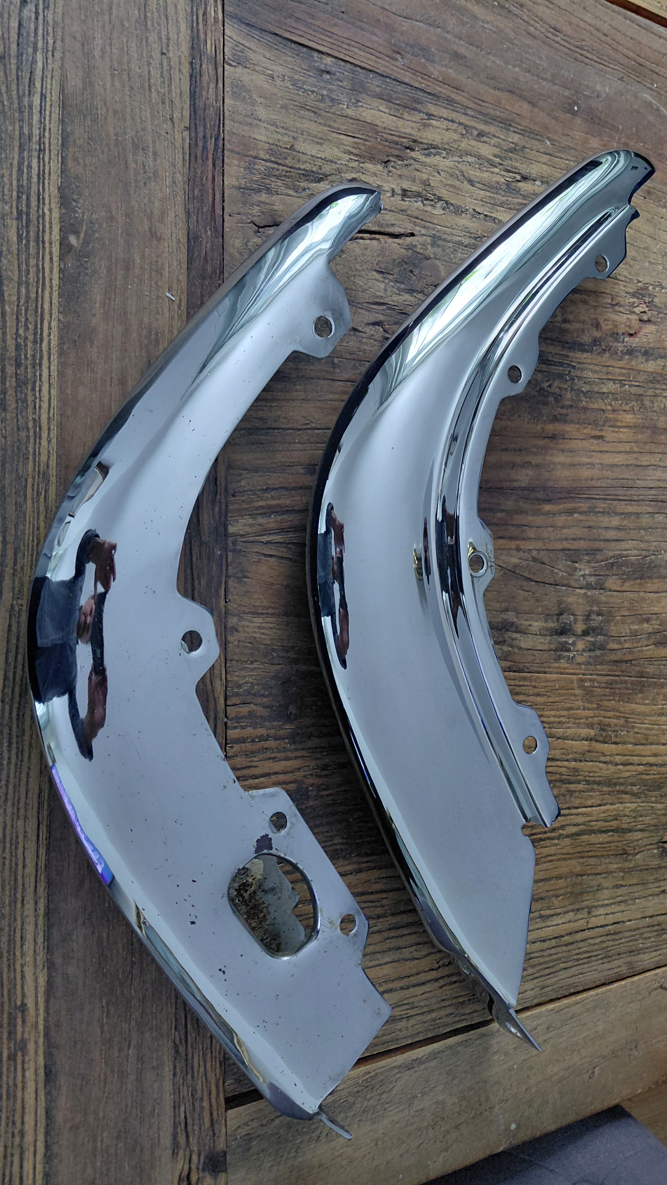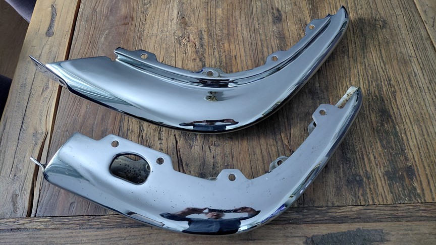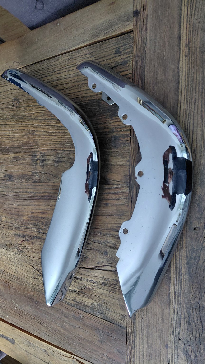 Hörn till främre stötfångare vähö sida. Övre nykromade något modifierade. Nedre bättre begagnade med lite märken. Säljes helst i par. Ev. frakt betalas av köparen.