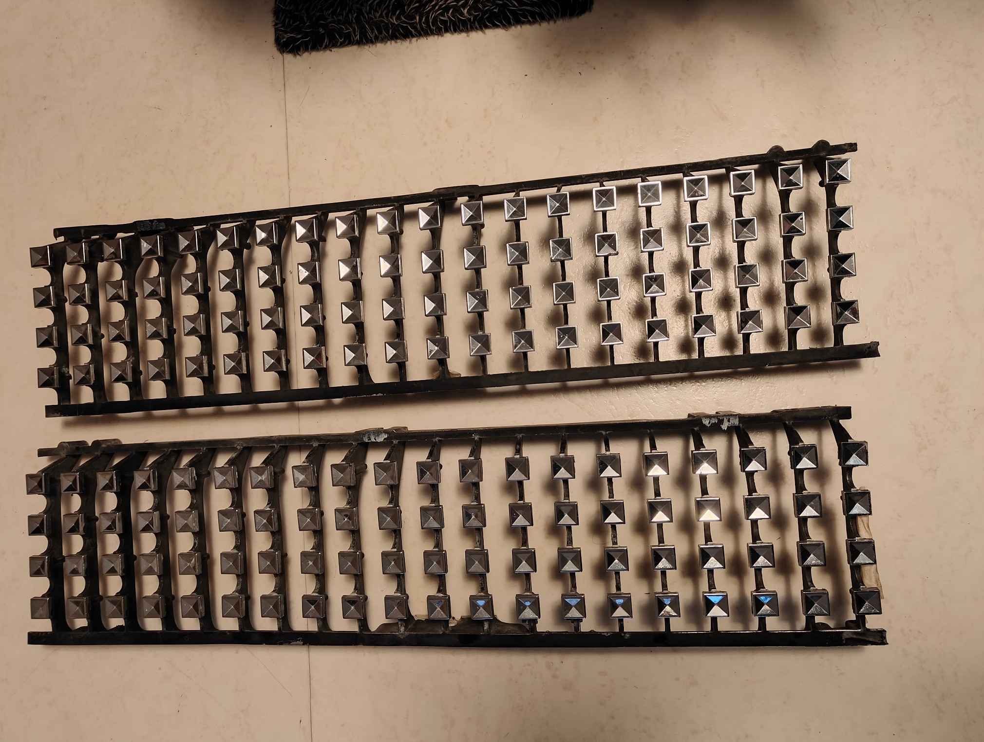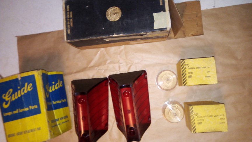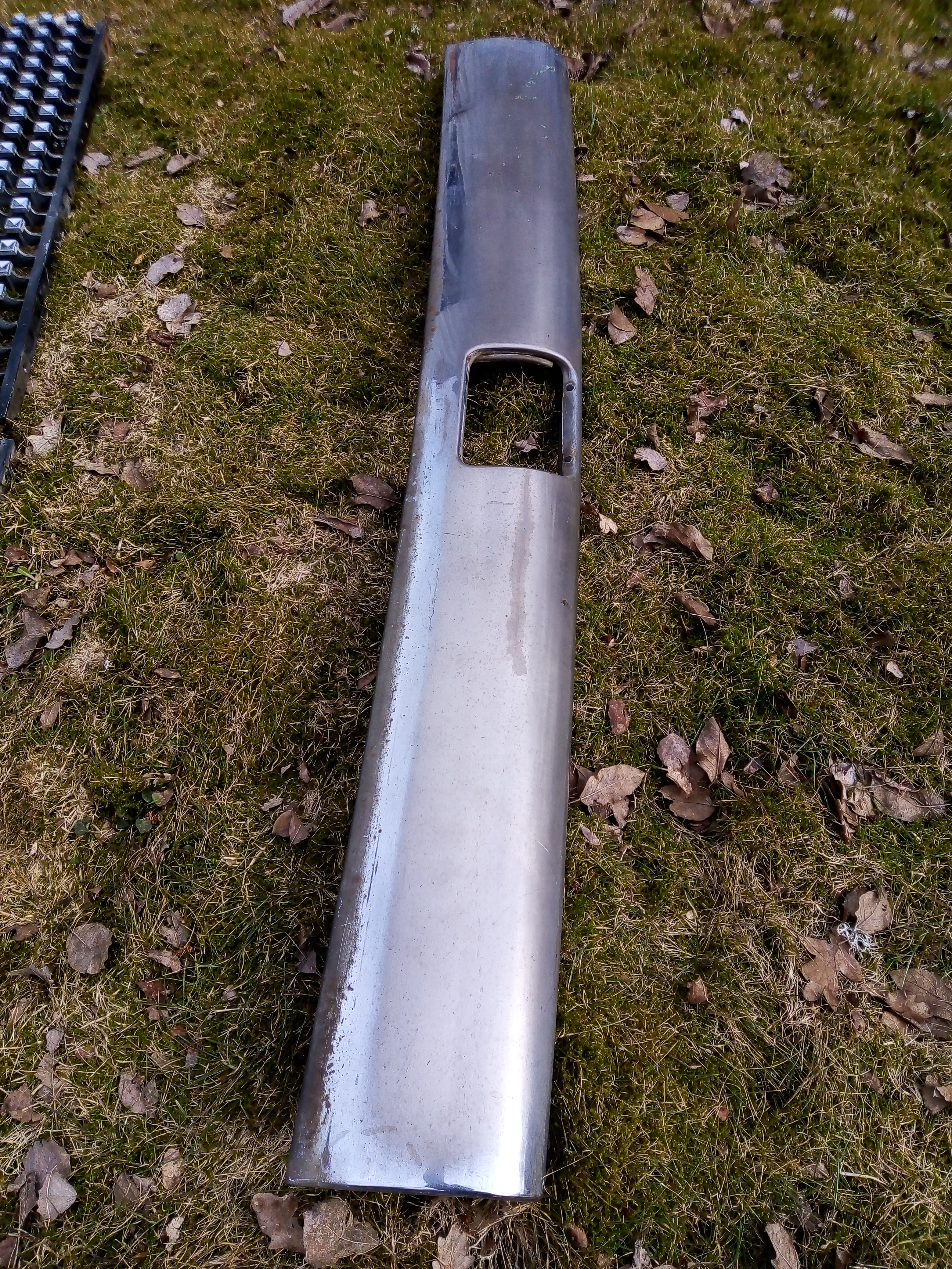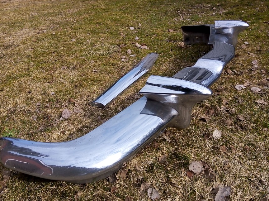 Stötfångare bra skick 6000 kr. Grill bra skick 6500 kr. Stötfångare bak mittdelen, matt krom 3000 kr. Bakljusglas NOS 1800 kr. Parklights NOS 700 kr.