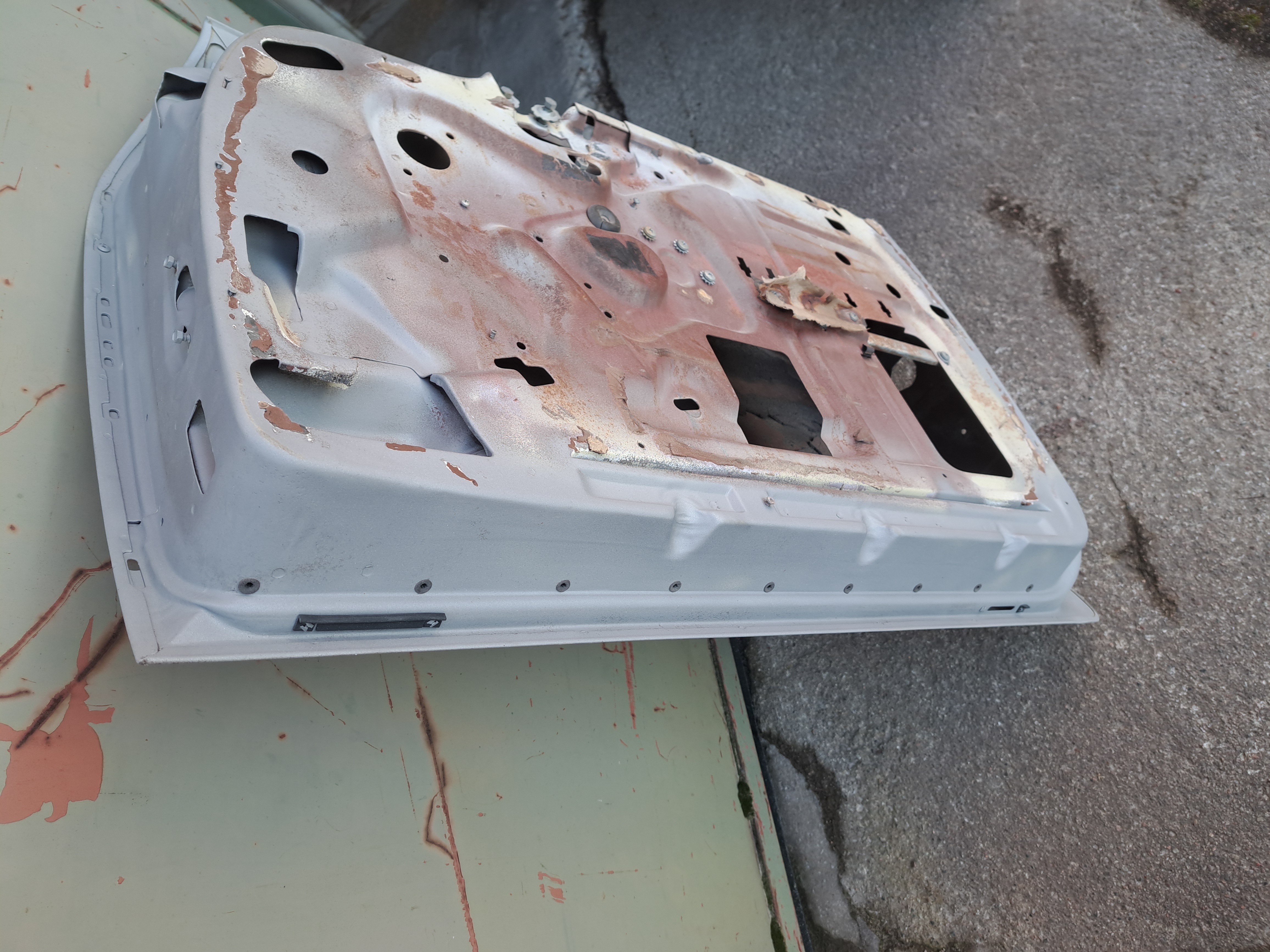 Höger framdörr i riktigt bra skick.blästrad.en lagning komm fram men vettigt gjort .kolla bilder noga.har dom andra tre dörrarna till bilen också. I bra skick.