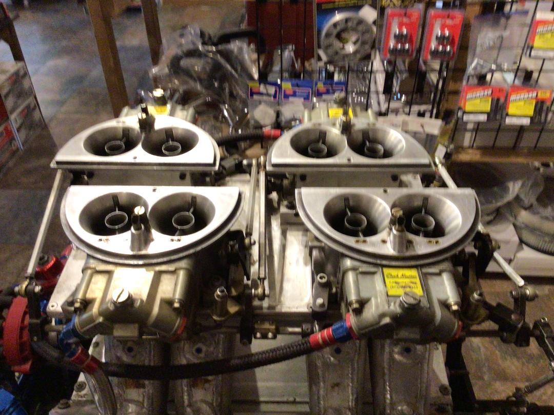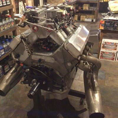 Chev 688 5 tum Dart Taitan alu block 4.675 borr, Brodix Eike 5 tum toppar Full Portade med 2.52, 1.88 titan ventiler, Bryant Billet Vevaxel 5.0 slag, Bill Miller stakar, Venolia kolvar, Jesel Belt drive med 1.0 uppflyttad kamaxel, Jesel lyftare, Jesel Vipparmar, Jesel Fördelare, Moroso Crank trigger och 4 stegs Torrsump, Nål lagrad Stor lob Kamaxel, Chuck Naytten förgasare, 2 NOS fogger system, Aeromtive regulatorer, CVR el vatten pump, Custom headers, motorblöja extra kamaxel, kolvar, foder m.m.