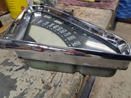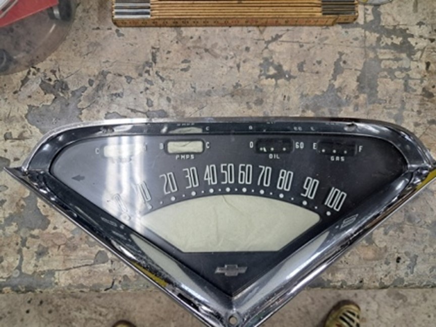 Chevrolet pickup 1957 Mätartavla, skick begagnat, funktion oljetryck och tank mätare okänt. Hämtas på plats, om jag ska skicka tillkommer frakt.