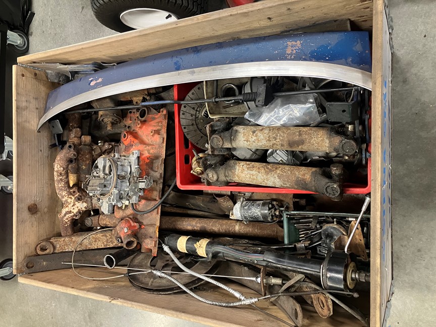 Corvette C3 delar , A-armar , fjäderpaket , torkarlucka , drivaxlar , rattstång , kardan , insug med förgasare , grenrör . mm…mm..