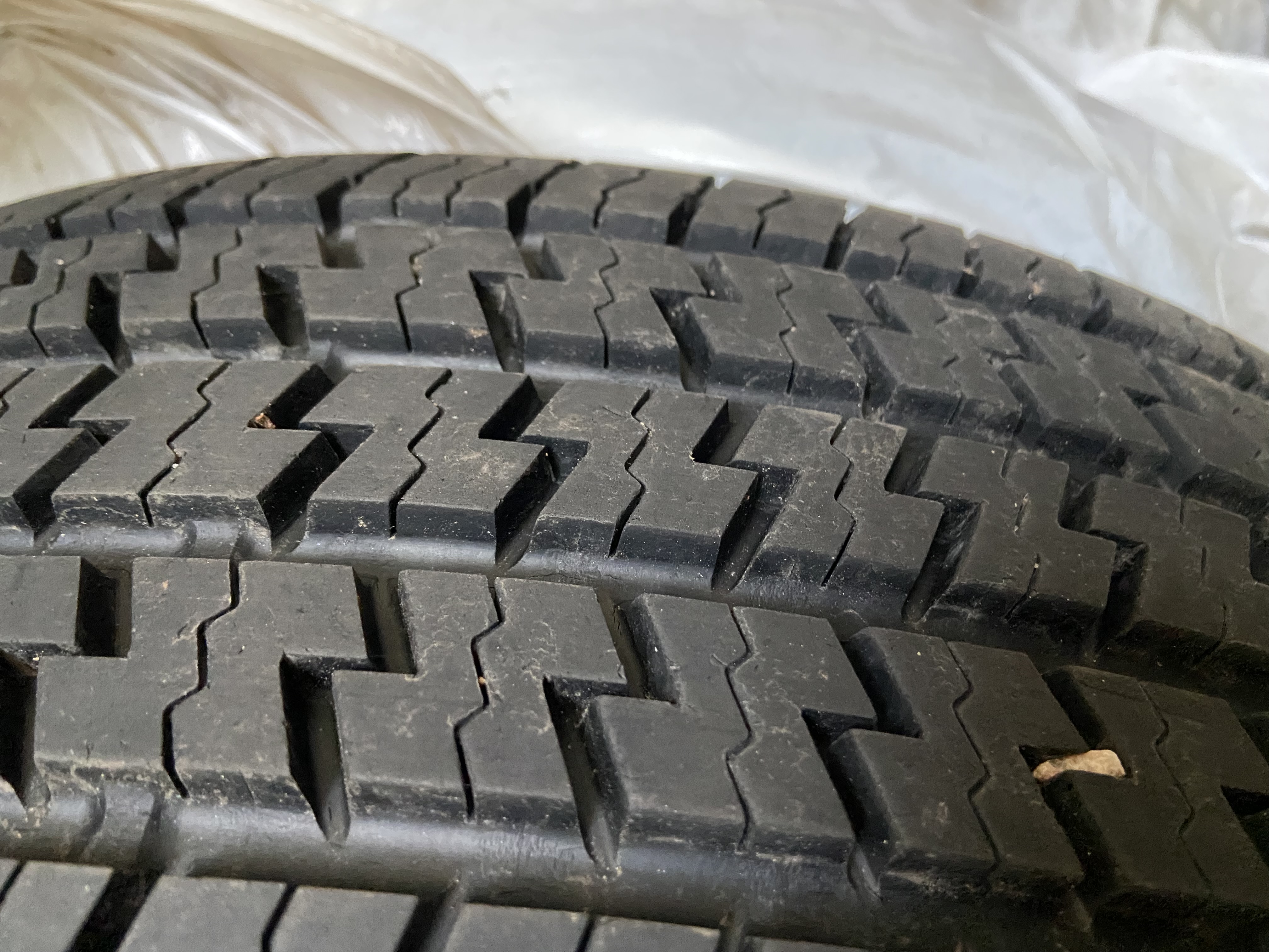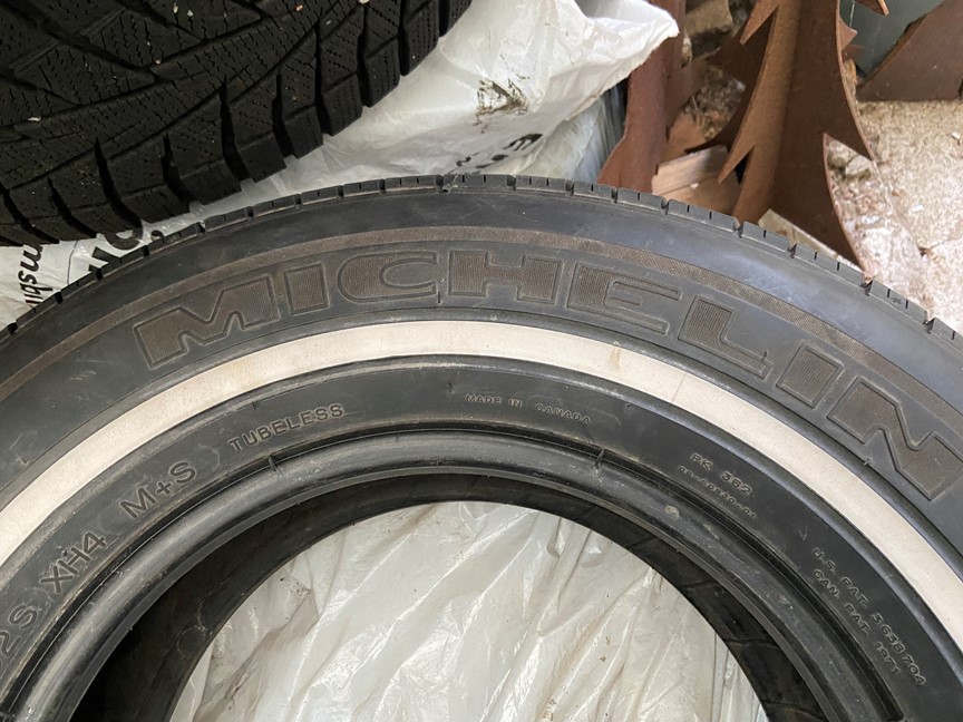 Michelin 22575r15 med vit rand 1 st 6,5 mm mönsterdjup, de andra mellan 7 och 8 mm.