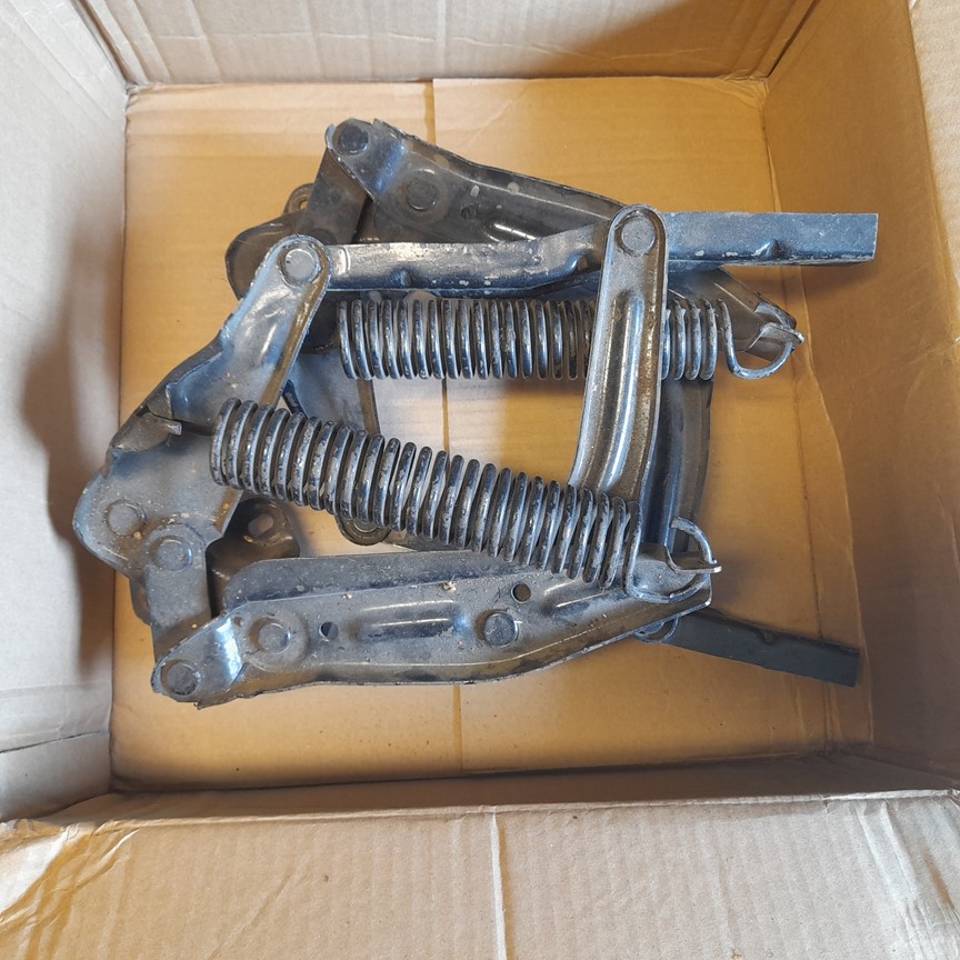 Original kylare i mkt bra skick 50cm bred 80 cm hög 700 kr , fina huvgångjärn 400 kr, spiralfjädrar bakre nästan nya 40 cm höga 600 kr, luftrenare till big block motorer 300 kr.