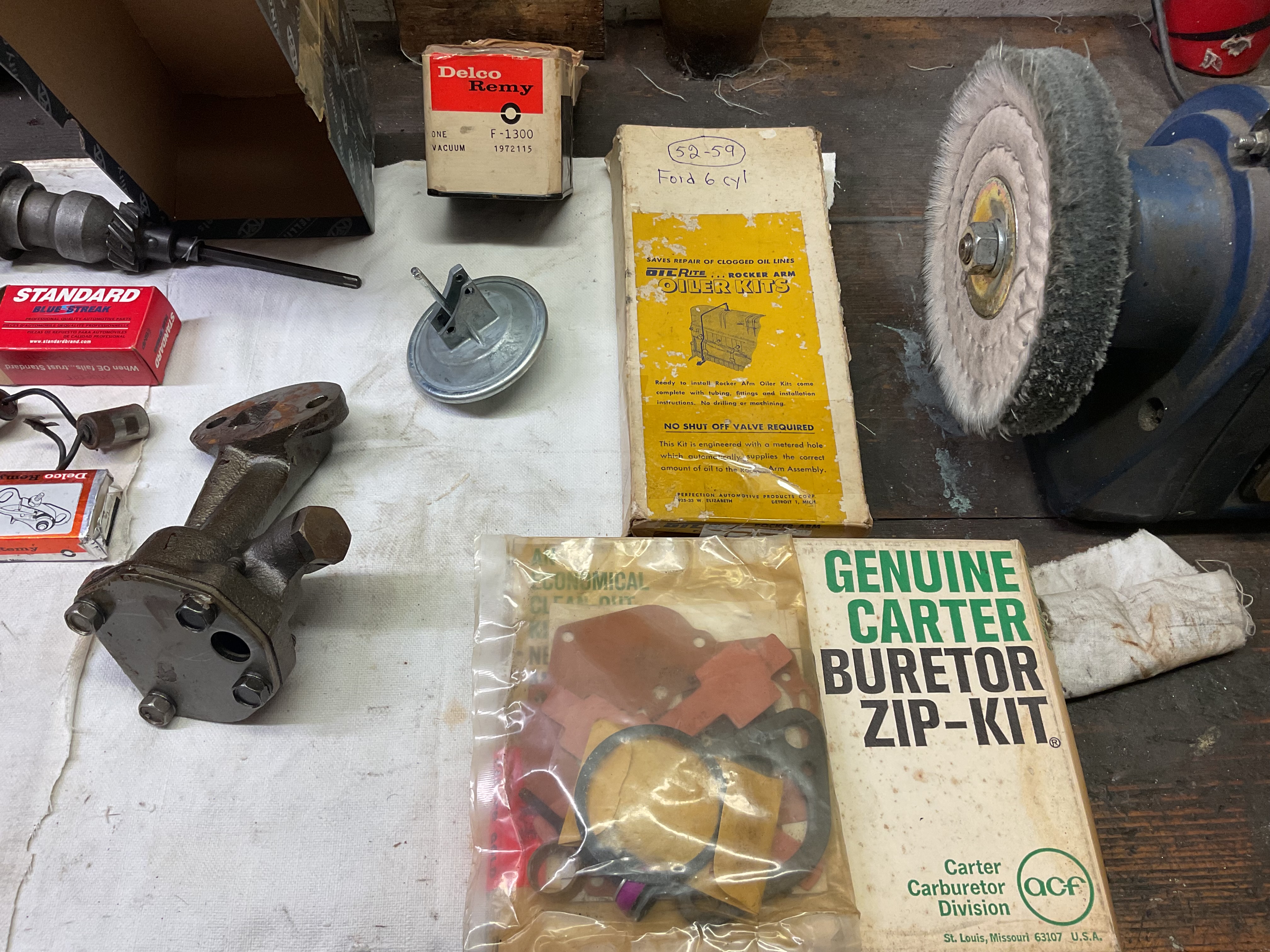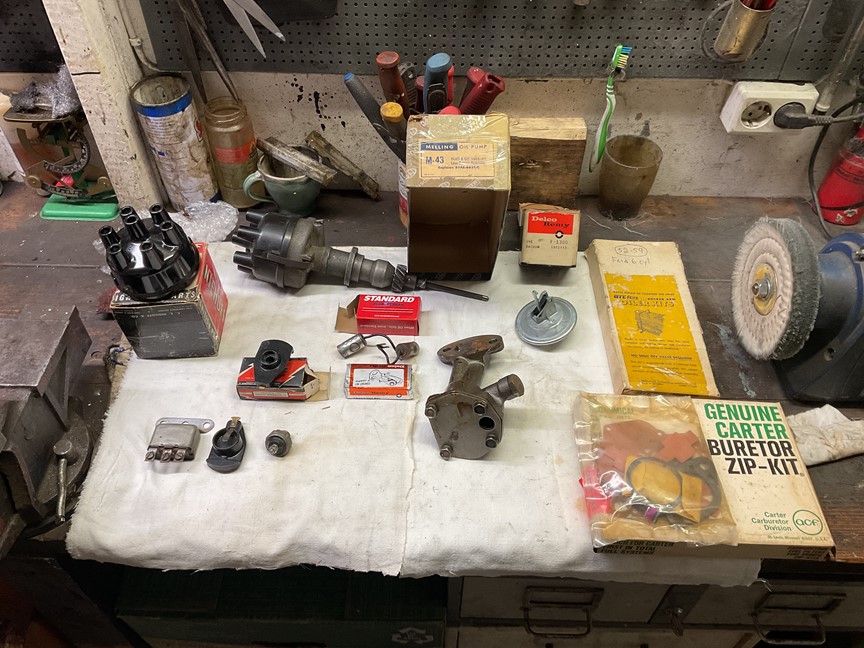 topplock behöver endast lätt slip på ventiler och säte +nya tätningar ! nors och nos ! oljepump tänddelar fungerande fördelare med oanvänt vacum diagram . Renoveringssats förgasare komplett . Komplett sats för utvändiga oljeledningar vipparmsbrygga Nors m.m