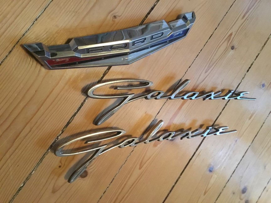 Elantenn 3500kr.Rostfria framskärmar från ökenbil.Perfekta Framskärmslister samt ögonbrynslister.Eltorkarmotor.Styrservopump.Huvöppnare.Grill.NOS bakljusglas.Elfönstermotorer.Galaxie emblem.Hela fläktpkt mm