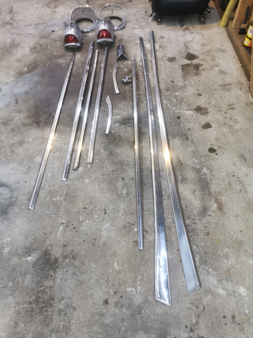 Lister Chevrolet 57 bel air 2ht mm måste repas pga någon i USA har skruvat fast vissa lister med skruv men går o repa om man vill lampsargar lite noppriga och klackljus också lite noppriga säljes billigt