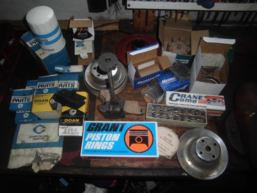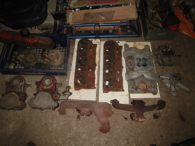 Jag har ej provkört den, Verkar vara komplett förutom fördelare Toppar insug m.m. bortplockat. Nya lager lyftare ringar packningssats m.m. Offenhauser Dual-port alu.insug Holley 4440 Heders 4 kamaxlar. 3 generatorer original insug med 1-ports förgasare, även häfte Racing manual 273-360.