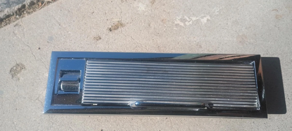 Mycket fina Eldorado och Fleetwood navkapselemblem 4000 kr. Nytillverkade fästen från växellådan till första rörklämmorna på avgassystemet 1000 kr. Dom blir guldförzinkade som org. Mycket fin askkopp bak cupe och cab 2000 kr. Det kommer mer bilder,även på nos delar.