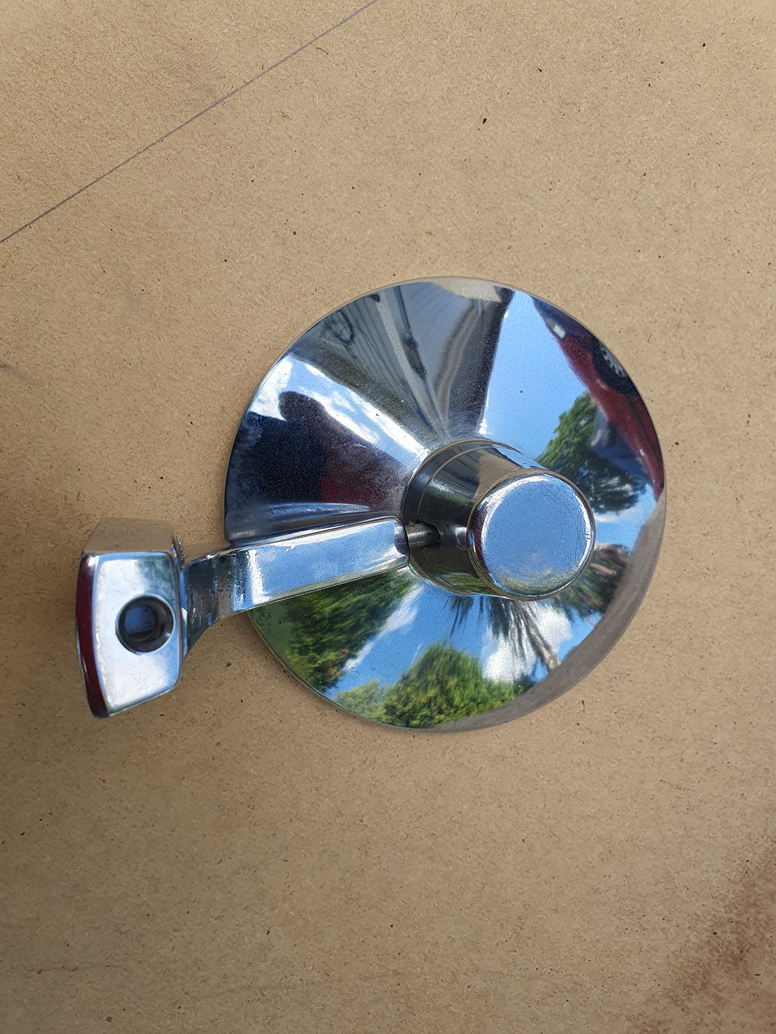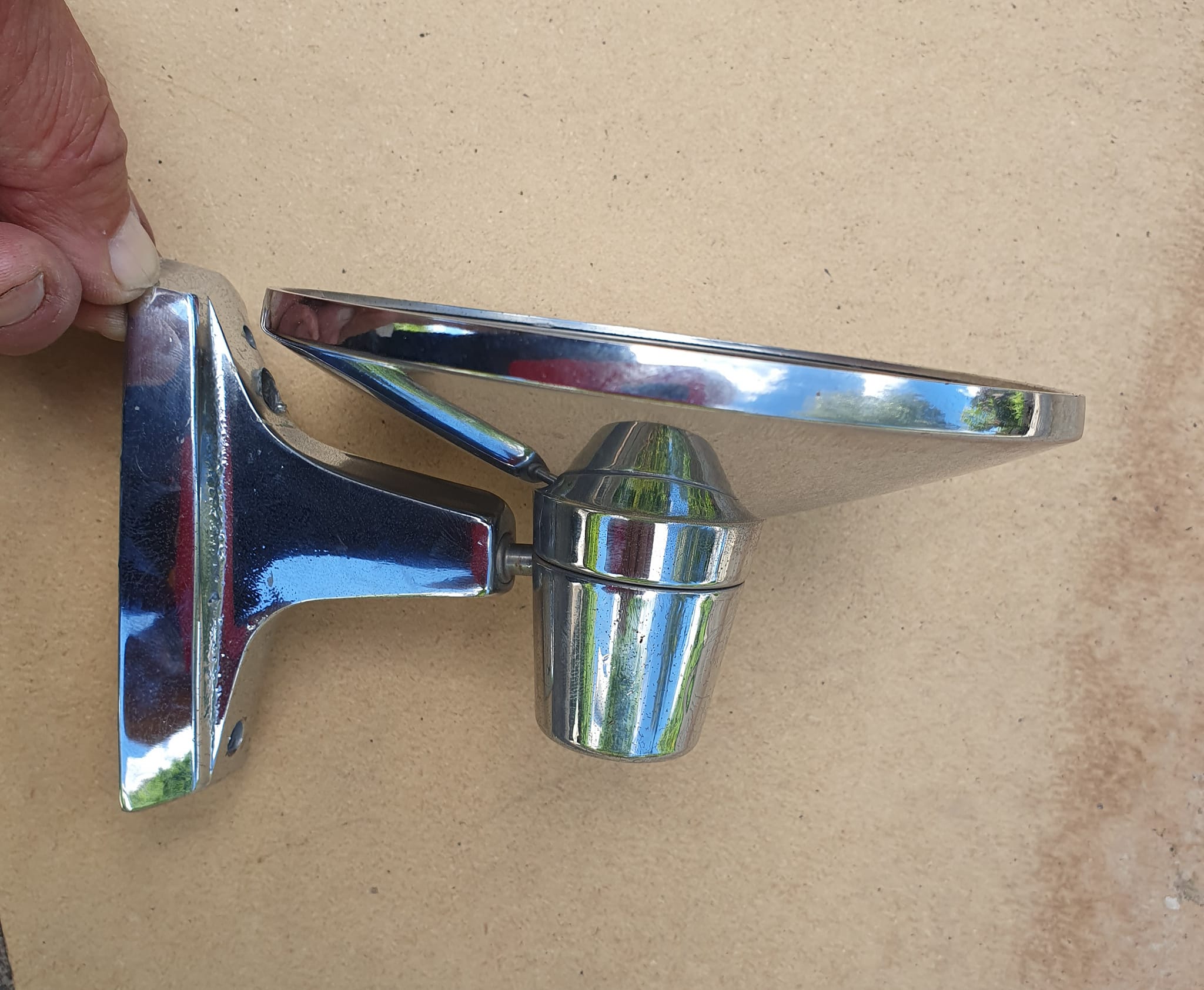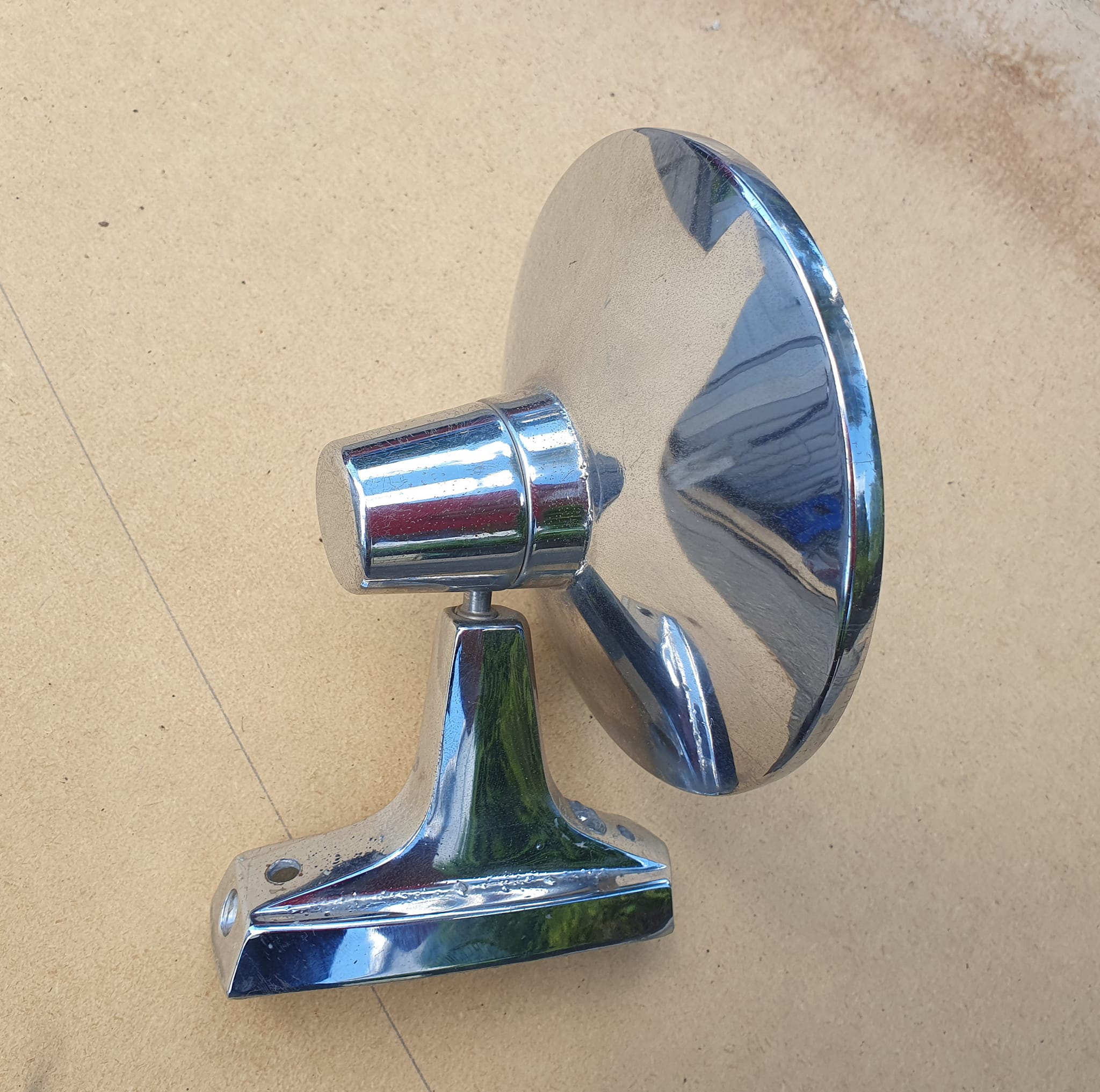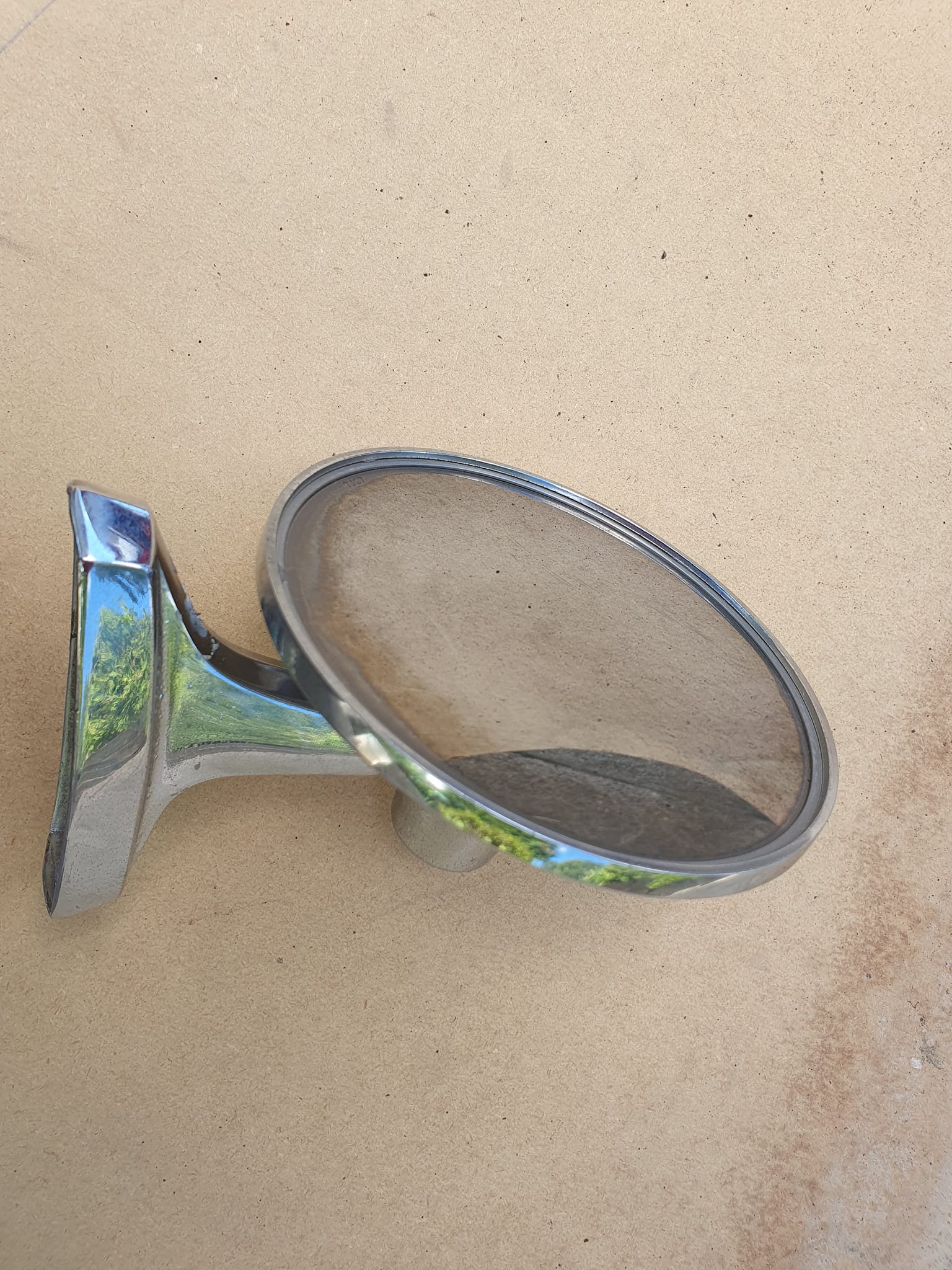 Troligen tillbehörs eller GM spegel. Fint bruksskick, lite mörk i kant på glas. Passar bägge sidor.