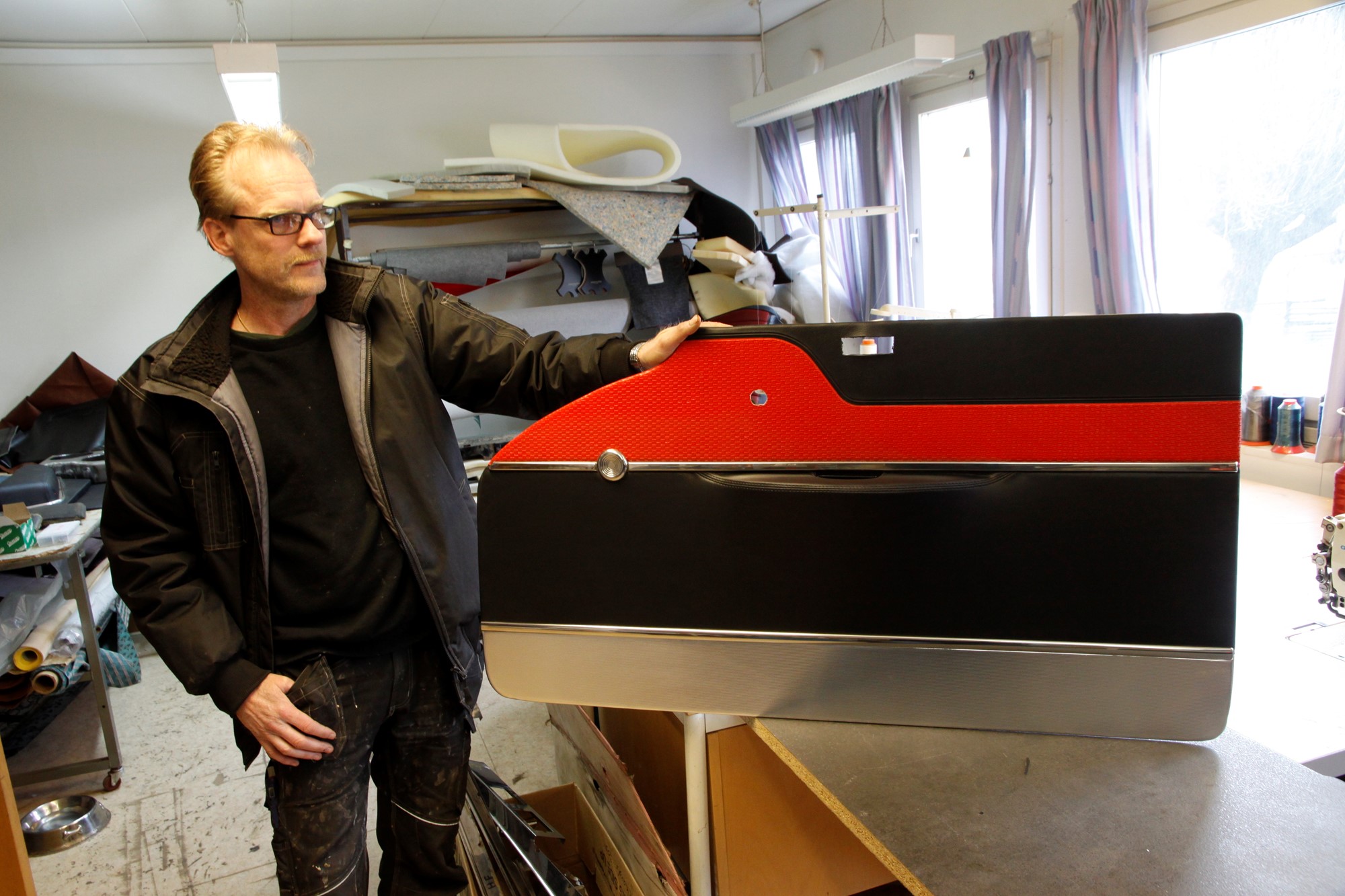 – Dörrsidor gick inte att få tag på så jag tillverkade nya stommar som jag lämnade till Weine Karlsson med företaget Solberga Bil & Smide. Han gjorde egna pressverktyg och resultatet blev exakt som original.